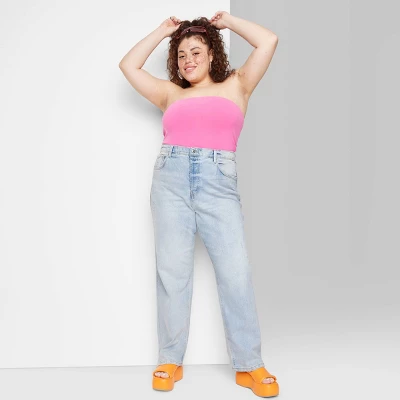 Women’s Super-High Rise Distressed Straight Jeans – Wild Fable™ Light Wash